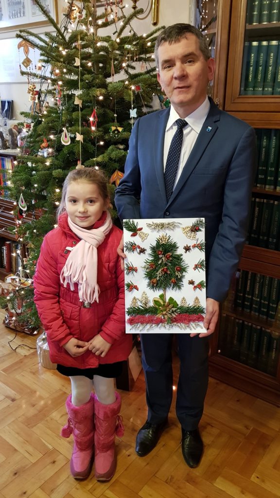 Pan Burmistrz bardzo podziękował za piękną kartkę, którą wykonała Pani Aneta Lompart wraz z uczniami pierwszej klasy, do której dołączony był śpiew kolędy w wykonaniu Leny i prosił, aby wszystkich przekazać życzenia Błogosławieństwa Bożego i wsparcia św. Kingi w realizacji zadań i codziennych obowiązków.