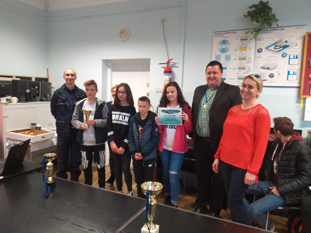 We wtorek 2 kwietnia br. odbył się gminny etap konkursu Bezpieczeństwo Ruchu Drogowego. Naszą szkołę w tym konkursie reprezentowali uczniowie klasy 6: Oliwia Bielak, Daria Klóska, Mateusz Żal oraz Patryk Kulig. Praca uczniów jak i nauczyciela przygotowującego ich do tego konkursu, Pana Kazimierza Górskiego, została nagrodzona wysokimi miejscami: drużynowo 1 miejsce; indywidualnie dziewczyny 1 i 2 miejsce kolejno Daria i Oliwia, w grupie chłopców 1 i 3 miejsce tj. Mateusz i Patryk. Gratulujemy wszystkim!