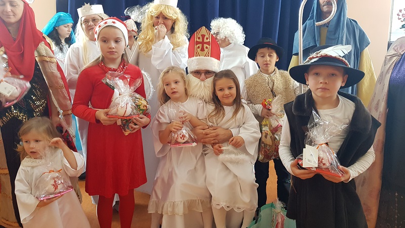 W piątek 6 grudnia br. do naszej szkoły dotarł niezwykły i długo oczekiwany gość: św. Mikołaj, który obdarował dzieci mnóstwem prezentów. Dziękujemy Pani Dyrektor, wychowawcom, nauczycielom, Radzie Rodziców i Rodzicom za pomoc, którą okazali św. Mikołajowi w przygotowaniu prezentów. TUTAJ są zdjęcia. Jedna dziewczynka miała zaprosić św. Mikołaja na obiad, a dokładnie na pierogi i chyba zapomniała.