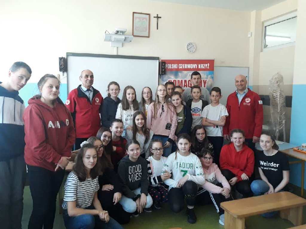 Pan Andrzej Lis od 46 lat oddaje krew. Swoją drogę honorowego krwiodawcy rozpoczął  po ukończeniu osiemnastego roku życia i do tej pory oddał 95 litrów pełnej krwi. To rekord Polski i Europy! Do pobicia rekordu świata i rekordu Guinessa, czyli 100 l krwi brakuje mu już niewiele, ale na to potrzeba około dwóch lat. Pan Dariusz Cieśla przybliżył uczniom idee Polskiego Czerwonego Krzyża i  honorowego krwiodawstwa. Opowiedział o roli krwi w sytuacjach ratujących życie i działalności krwiodawstwa w Polsce. Uczniowie z ciekawością wysłuchali  prelekcji, poznali idee krwiodawstwa i cel jaki ma honorowe oddawanie krwi.