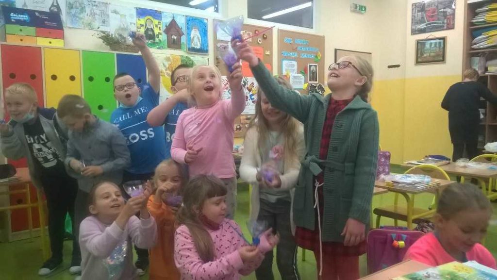 Nasza szkoła po raz drugi wzięła udział w akcji organizowanej przez sieć sklepów Biedronka. W tym roku z „Gangiem Fajniaków” troszczymy się o piękno przyrody. W poniedziałek 12 października br. klasa druga wraz z Panią Iwoną Walczak i Panią Dorotą Ogorzały wzięła udział w zajęciach: „Moje miejsce na ziemi. Eko-zakątek eksperymenty z powietrzem”. TUTAJ są zdjęcia.