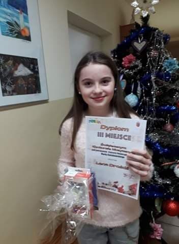 Gratulujemy Lenie zajęcia trzeciego miejsca w Świątecznym Konkursie Muzycznym zorganizowanym przez Powiatowy Młodzieżowy Dom Kultury w Nowym Sączu. Wszystkie wyniki znajdziesz TUTAJ.