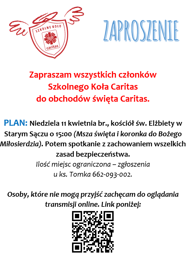 SZKOLNE KOŁO CARITAS – ZAPROSZENIE