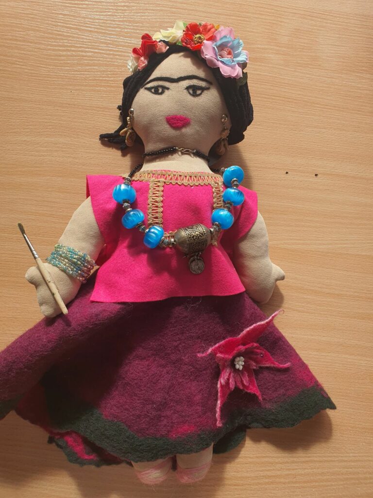Frida Kahlo – szmaciana laleczka Konrada Tokarczyka z kl. 7 została zgłoszona do konkursu na oryginalną laleczkę z naszej szkoły.
