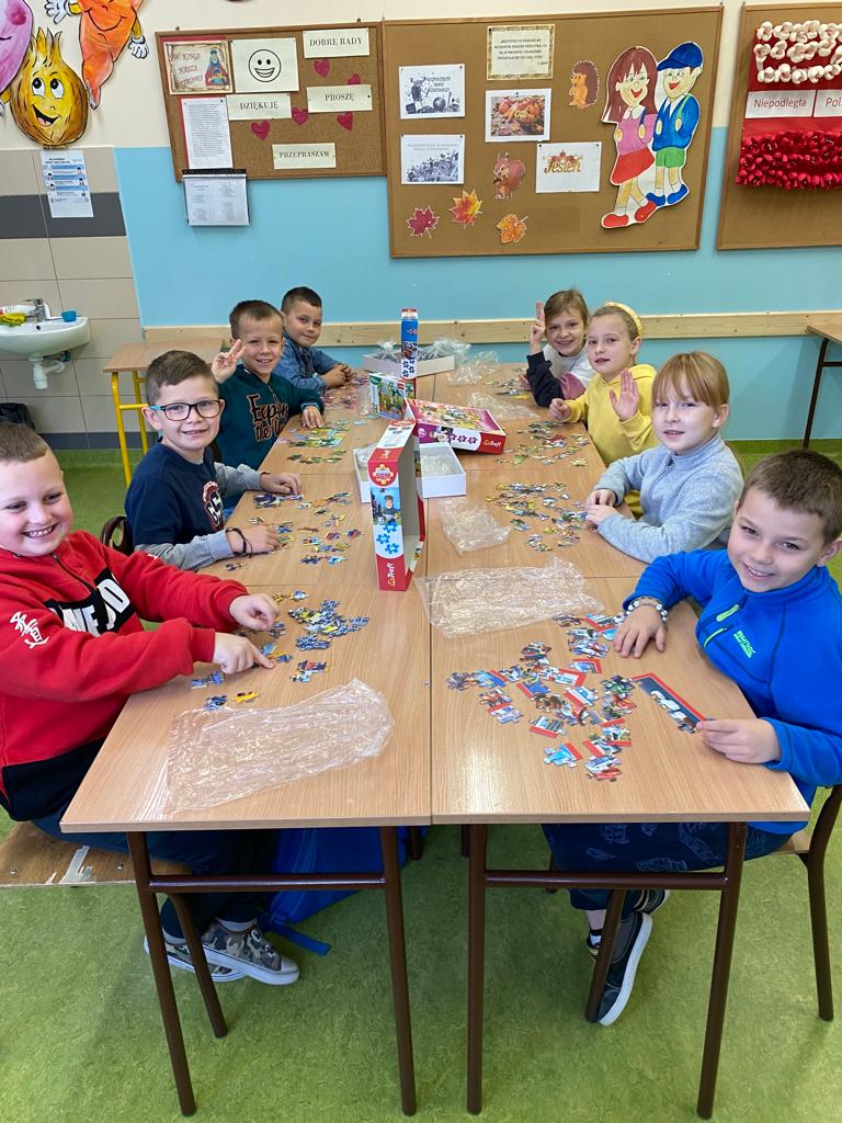 Puzzle mimo prostoty pomysłu, zapewniają rozrywkę na wiele godzin, nie tylko dzieciom, ale i dorosłym. Układanie puzzli to świetna zabawa, która posiada walory edukacyjne. Uczy koncentracji, wytrwałości, współpracy w zespole oraz rozwija takie cechy jak: spostrzegawczość oraz analizę i syntezę wzrokową, a przede wszystkim odporność emocjonalną, a w szczególności integrują klasę. Klasa 2 podjęła dziś świetną zabawę z puzzlami w Międzynarodowy Dzień Postaci z Bajek!