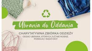 3.10.2023r od godz. 7.00 do 15.00 przy budynku szkoły można składać odzież używaną związanych w workach. Akcja zbierania jest dla chorej Wiktoria.