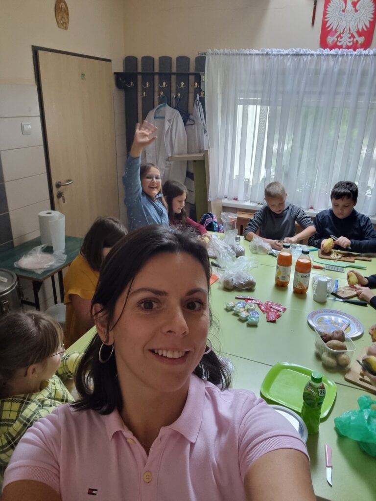 Dzisiaj klasa 4 znowu rozwijała swoje umiejętności kulinarne własnoręcznie przygotowując frytki. Najpierw trzeba było obrać ziemniaki, potem je pokroić a na końcu usmażyć ale tym zajmowała się pani Marta.