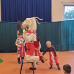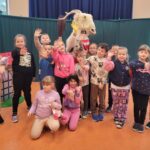 W środę 30 października, odwiedził naszą szkołę Koziołek Matołek, a dokładnie Teatr Art Concept z Radomia. Dzieci obejrzały przedstawienie pt. „Koziołek Matołek” na motywach bajki Kornela Makuszyńskiego. Przedszkolaki oraz uczniowie klas 1-3 nie tylko oglądały przedstawienie, ale wykonywały też różne zadania poznając polskie przysłowia o kozach. Niektórzy uczniowie z klas pierwszych podkuwali również Koziołka Matołka i poznali tytuły książek, które napisał Kornel Makuszyński. Na zakończenie wszystkie dzieci dołączyły do Klubu Koziołka Matołka otrzymując stosowne pieczątki oraz wykonały pamiątkowe zdjęcia.