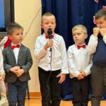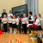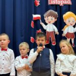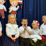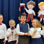Przedszkolaki recytowali wiersze o tematyce patriotycznej i śpiewali pieśni patriotyczne. Utwory poetyckie podkreślały nastrój lat walki i zmagań z zaborcami. Ich uzupełnieniem były utwory muzyczne, przepiękne pieśni patriotyczne. Mali artyści zebrali zasłużone brawa i gratulacje od publiczności i zaproszonych gości, wśród których był pan radny Wojciech Jurecki, przedstawiciele Koła Gospodyń Wiejskich oraz Rodzice. Wspaniale wystąpił nasz chórek szkolny. Szczególne podziękowania kierujemy do Rodziców z Trójek Klasowych , którzy przygotowali słodki poczęstunek , oraz dla pani Karoliny Barnach za piękną dekorację stołów.