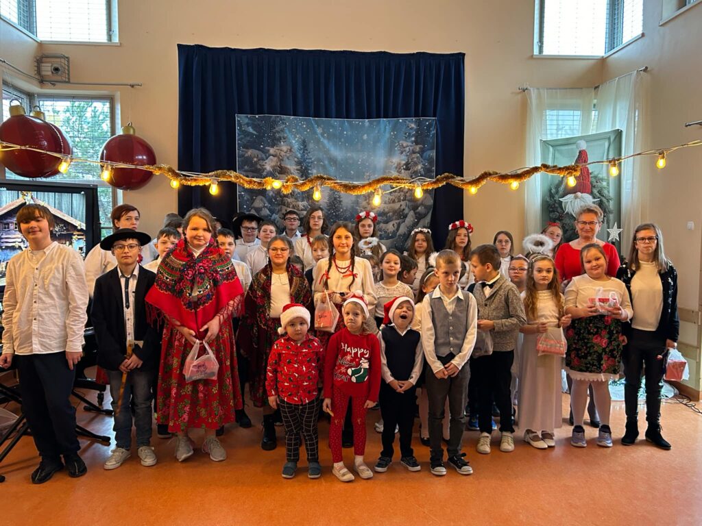 W piątek 20.12.2024r. w naszej szkole odbyło się spotkanie wigilijne połączone z przeglądem kolęd i pastorałek. Wszystko rozpoczęło się wspólną modlitwą poprowadzoną przez ks. Mateusza Gurbisza i życzeniami Pani Dyrektor Grażyny Smagi skierowanymi w stronę uczniów, rodziców i nauczycieli. Następnie rozpoczął się już tradycyjny w naszej szkole przegląd kolęd i pastorałek. Za organizację odpowiedzialni byli pani Agata Nicpońska, pani Maria Tokarczyk oraz ks. Mateusz Gurbisz. Trudno opisać talenty prezentowane przez naszych uczniów dlatego zachęcamy do obejrzenia wideo relacji. Dziękujemy Radzie Rodziców za obecność i pomoc w organizacji tego wydarzenia oraz piękne życzenia świąteczne.