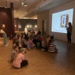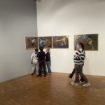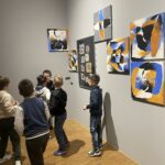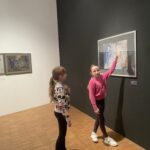 Pierwszym punktem programu było zwiedzanie wystawy „Cztery kolory” autorstwa Jacka Waltosia. Dzieci z zainteresowaniem wysłuchały opowieści o artyście, jego sposobie tworzenia oraz charakterystycznej stylistyce prac. Podczas oglądania obrazów uczniowie próbowali określić dominujące techniki i barwy, co stanowiło wprowadzenie do dalszych działań.