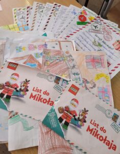 Uczniowie klasy II i III oraz chętni ze starszych klas, pisali listy do Mikołaja, a pierwszaki rysowali “Fabrykę św. Mikołaja”
