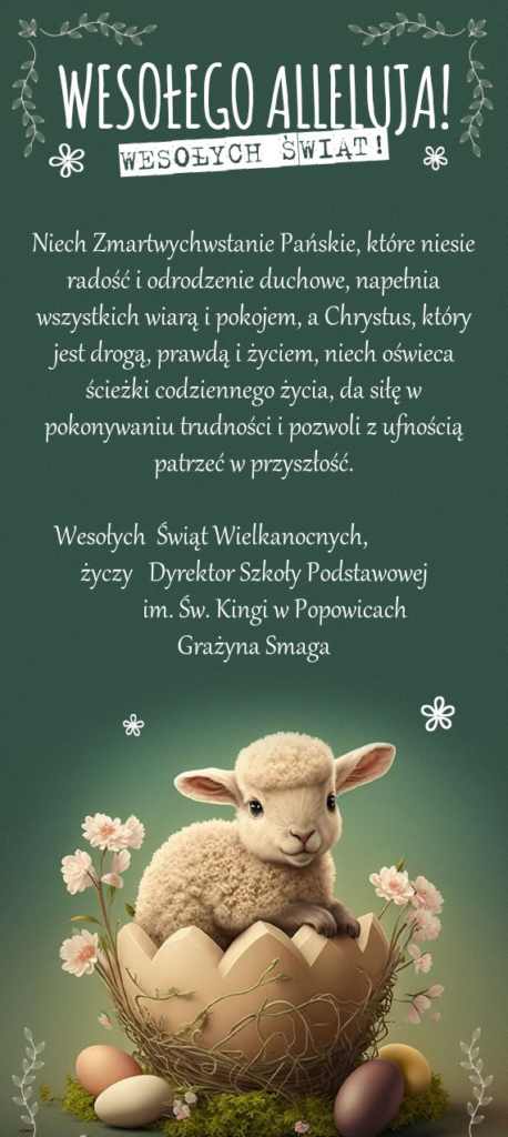 31 marca w naszej szkole odbył się Poranek Wielkanocny. Klasa 2 wraz z wychowawcą, przedstawili wielkanocną inscenizację okraszoną wielkanocnymi piosenkami. Niech te święta będą pełne nadziei i wiary, radosnych spotkań przy wielkanocnym stole. Po akademii cała społeczność szkolna odśpiewała Pani Czytaj więcej!